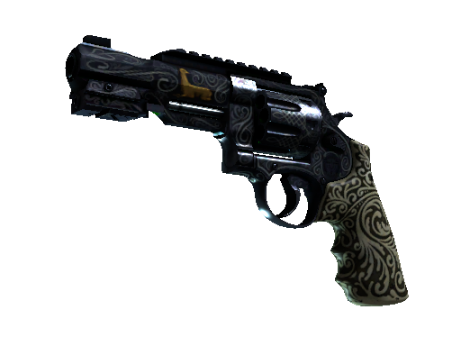 Ручка слоновой кости сочетается с витиеватой гравировкой на синем металле. Жми на рычаг